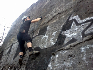 Rozpoczęło się w czwartek, od rowerowej wizyty w KKS'ie. Spotkania rozpoczynamy tam ok. 19, temperatura o tej godzinie nie jest już taka jak w południe. Pocieszałem się jednak tym, iż w drodze powrotnej jest pod górkę, a jak wiadomo człowiek jadący pod górkę bardziej się męczy, a jak się męczy to się grzeje. Niby prawda, ale w tym wypadku wracałem ok. 20:30, więc spadek temperatury był znaczny, co spowodowało deficyt ciepła i moja teoria się nie sprawdziła. Zmarzłem jak cholera (mimo iż lubię mróz), ale warto było. Mięśnie rozruszane, sprzęt przetestowany i jak to mówią miłośnicy kocich zawodów w sprincie przez płotki - pierwsze koty za płoty. Później przyszedł weekend. Akurat teraz nie było planów górskich, więc sobota została zarezerwowana na rower. A cel był prosty: zwiedzić Rogoźnik i odnaleźć kilka ciekawych miejsc, na które do tej pory jakoś nigdy nie było czasu, czyli Rogoźnicki Kamieniołom oraz Jaskinię Żydowską. No i jeszcze zawitać nad trzecie jeziorko, to najmniejsze. Ekipa zebrała się nawet spora, bo aż 5 osób. Wyruszyliśmy punktualnie ok. 14:30 z parkingu w Michałkowicach, by już po parunastu minutach wydostać się z miejskiego zgiełku. Od Dąbrówki Wielkiej, przez Wojkowice, aż do Rogoźnika droga jest bardzo przyjemna. Ruch samochodów niewielki, zabudowań mało, wokół tylko pola i Brynica. Fajnie jest znowu móc pojechać swoimi ulubionymi trasami. Na niebie zero chmur, temperatura 20°C i ciepły, przedwiosenny, delikatny powiew wiatru. Pogoda wręcz wymarzona na rower.
